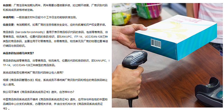 商品條形碼是由一組規(guī)則排列的條、空及其對(duì)應(yīng)代碼組成,是表示商品特定信息的標(biāo)識(shí)。商品條形碼具有唯一性的特點(diǎn),即商品條碼在全 世界范圍內(nèi)是唯一的,同一條碼只識(shí)別同一項(xiàng)目,這樣就對(duì)產(chǎn)品提供了唯一標(biāo)識(shí)。由于商品標(biāo)識(shí)代碼在全世界范圍內(nèi)是惟一的、通用的、標(biāo)準(zhǔn)的,能作為全球貿(mào)易中信息交換、資源共享的關(guān)鍵字和“全球通用的商業(yè)語(yǔ) 言”,也是進(jìn)入大型商場(chǎng)的必要的條件之一 。